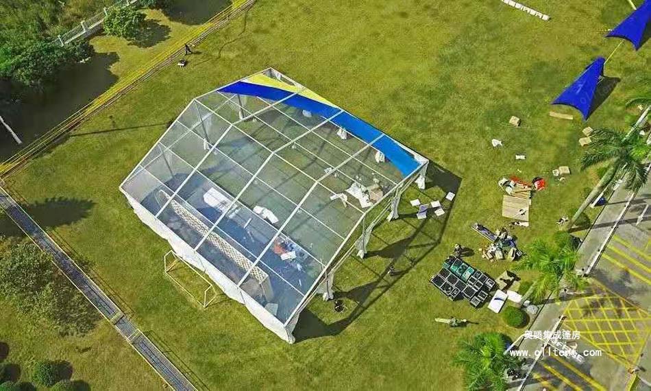 因篷房對搭建場所要求不高,可以搭建在草坪上、水泥地上、水面上等等,活動舉辦者可以更靈活地選擇自己想要搭建的場所。為了更為人性化,透明篷房還有各種形狀和靈活的結(jié)構(gòu)組合,而且搭建簡易迅速、施工周期短,非常適合用于戶外短期或者長期的活動。