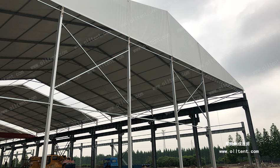 奧騰大型篷房可滿足于各種不同的活動需要。超大凈跨度:10-60米,模塊化結構,搭建工期短,易于組裝和拆卸。大型篷房外形優(yōu)雅、搭建靈活、安全環(huán)保、防雨、防曬、防霉、阻燃,可抗8-10級大風,廣泛應用于各類戶外臨時性活動,作為臨時或長期建筑都是很好的選擇。