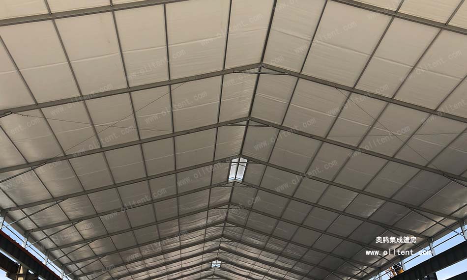 大型篷房還有多種可供選購的配置,使篷房的用途和功能更加強大。例如:ABS墻體、三明治墻體、彩鋼瓦墻體、玻璃幕墻、透明頂、頂幔布幔內(nèi)飾、排風扇、卷簾門、玻璃門、承重盤承重框、地板系統(tǒng)、排水槽等