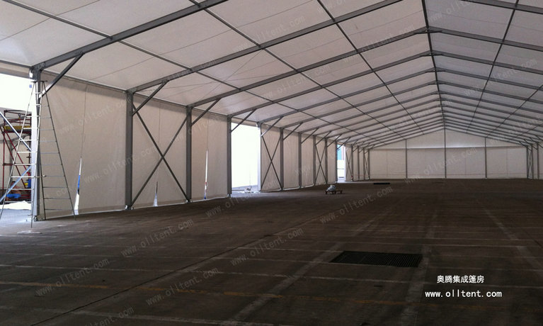 大型篷房還有多種可供選購的配置,使篷房的用途和功能更加強大。例如:ABS墻體、三明治墻體、彩鋼瓦墻體、玻璃幕墻、透明頂、頂幔布幔內飾、排風扇、卷簾門、玻璃門、承重盤承重框、地板系統(tǒng)、排水槽等
