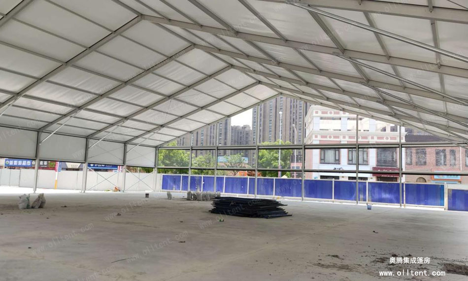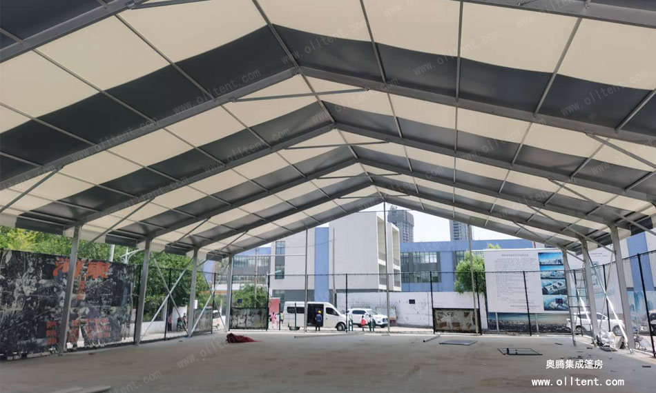 籃球場館篷房主體結構上采用了6061-T6的鋁合金材料,在戶外基本可抗8-10級大風,篷布采用雙層pvc合成纖維篷布制成。同時具備防曬、防水、阻燃等特性,而且裝配式籃球場館篷房的搭建、拆卸、運輸都簡單便捷,建造成本低、擁有可移動的優勢。